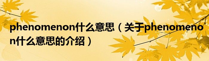 大家好,小都来为大家解答以上的问题。phenomenon什么意思,关于phenomenon什么意思的介绍很多人还不知道,现在让我们一起来看看吧!