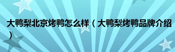 大家好,小源来为大家解答以上问题。大鸭梨北京烤鸭怎么样,大鸭梨烤鸭品牌介绍很多人还不知道,现在让我们一起来看看吧!