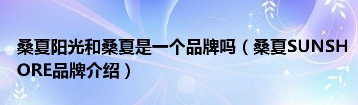 大家好,小源来为大家解答以上问题。桑夏阳光和桑夏是一个品牌吗,桑夏SUNSHORE品牌介绍很多人还不知道,现在让我们一起来看看吧!