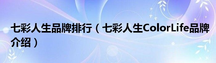 大家好,小源来为大家解答以上问题。七彩人生品牌排行,七彩人生ColorLife品牌介绍很多人还不知道,现在让我们一起来看看吧!