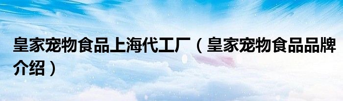 大家好,小源来为大家解答以上问题。皇家宠物食品上海代工厂,皇家宠物食品品牌介绍很多人还不知道,现在让我们一起来看看吧!