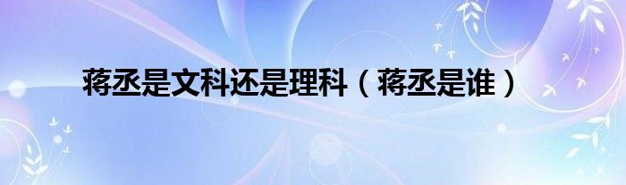 大家好,小飞来为大家解答以上的问题。蒋丞是文科还是理科,蒋丞是谁这个很多人还不知道,现在让我们一起来看看吧!
