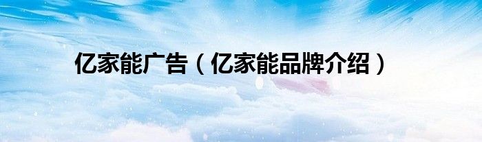 大家好,小源来为大家解答以上问题。亿家能广告,亿家能品牌介绍很多人还不知道,现在让我们一起来看看吧!
