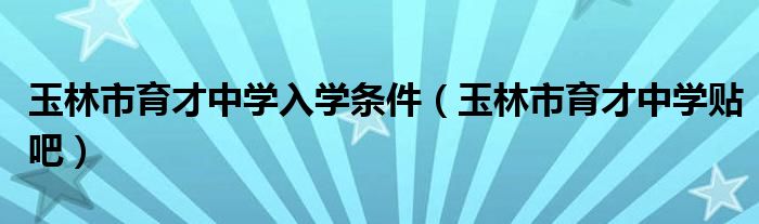 玉林市育才中学入学条件,玉林市育才中学贴吧这个很多人还不知道,小飞来为大家解答以上的问题。现在让我们一起来看看吧!