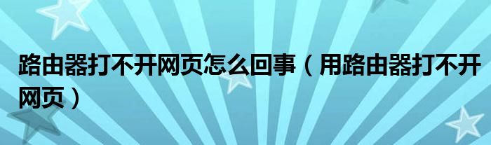 用路由器打不开网页?简介2怎么样