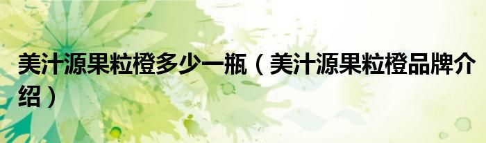 大家好,小源来为大家解答以上问题。美汁源果粒橙多少一瓶,美汁源果粒橙品牌介绍很多人还不知道,现在让我们一起来看看吧!