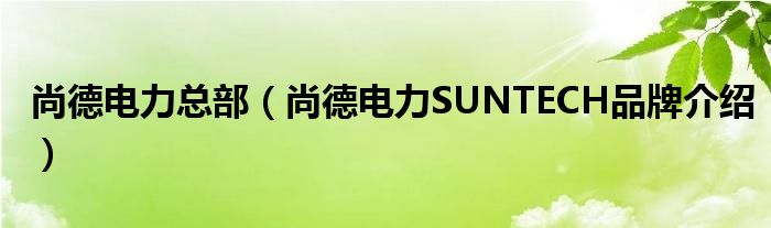 大家好,小源来为大家解答以上问题。尚德电力总部,尚德电力SUNTECH品牌介绍很多人还不知道,现在让我们一起来看看吧!