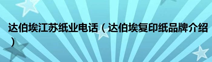大家好,小源来为大家解答以上问题。达伯埃江苏纸业电话,达伯埃复印纸品牌介绍很多人还不知道,现在让我们一起来看看吧!