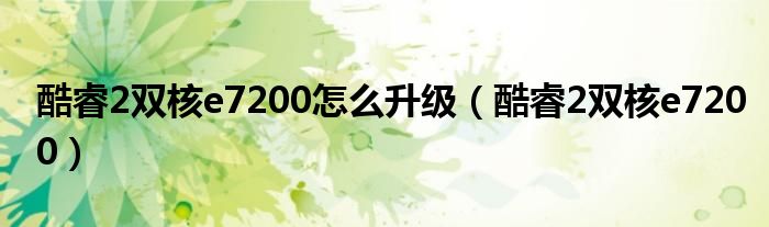 酷睿2双核e7200怎么升级,酷睿2双核e7200很多人还不知道,乐乐来为大家解答以上问题,现在让我们一起来看看吧!