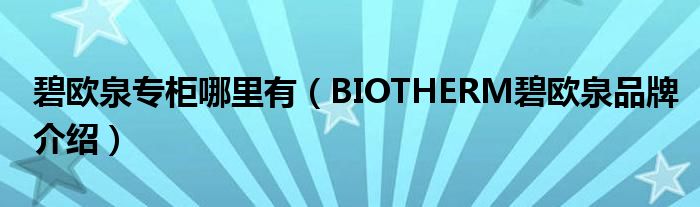 大家好,小源来为大家解答以上问题。碧欧泉专柜哪里有,BIOTHERM碧欧泉品牌介绍很多人还不知道,现在让我们一起来看看吧!