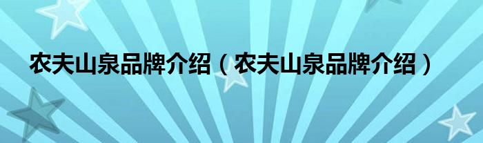 大家好,小源来为大家解答以上问题。农夫山泉品牌介绍,农夫山泉品牌介绍很多人还不知道,现在让我们一起来看看吧!