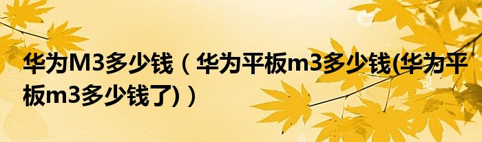 1.华为平板 M3 华为商城售价:华为平板 M3 4GB+32GB WIFI版¥ 18800华为平板 M3 4GB+64GB WIFI版¥ 22800华为平板 M3 4GB+128GB WIFI版¥ 26800华为平板 M3 4GB+64GB LTE版¥ 26800华为平板 M3 4GB+32GB LTE版¥ 23800华为平板M3非常不错的,可以到华为体验店进行体验一下,也可以到华为官网查询产品参数信息 华为平板M真正的一体成型机身,完全无A壳设计,让视觉更简洁,让结构更坚固。