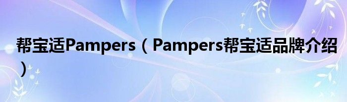大家好,小源来为大家解答以上问题。帮宝适Pampers,Pampers帮宝适品牌介绍很多人还不知道,现在让我们一起来看看吧!