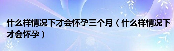 大家好,linda来为大家解答以上的问题。什么样情况下才会怀孕三个月,什么样情况下才会怀孕很多人还不知道,现在让我们一起来看看吧!