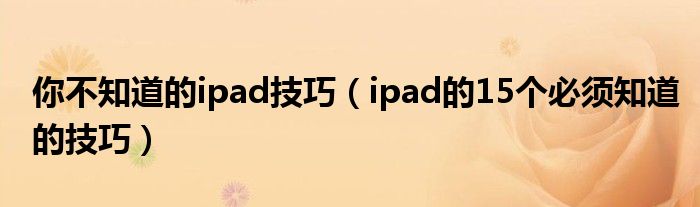 大家好,今天小悦来为大家解答以上问题。你不知道的ipad技巧,ipad的15个必须知道的技巧很多人还不知道,现在让我们一起来看看吧!