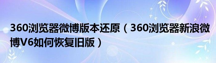 大家好,今天小悦来为大家解答以上问题。360浏览器微博版本还原,360浏览器新浪微博V6如何恢复旧版很多人还不知道,现在让我们一起来看看吧!