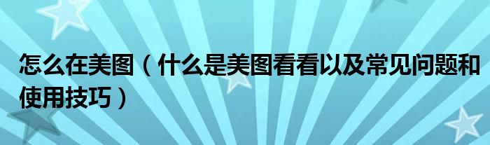 大家好,今天小悦来为大家解答以上问题。怎么在美图,什么是美图看看以及常见问题和使用技巧很多人还不知道,现在让我们一起来看看吧!
