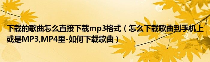 大家好,今天小悦来为大家解答以上问题。下载的歌曲怎么直接下载mp3格式,怎么下载歌曲到手机上或是MP3,MP4里-如何下载歌曲很多人还不知道,现在让我们一起来看看吧!