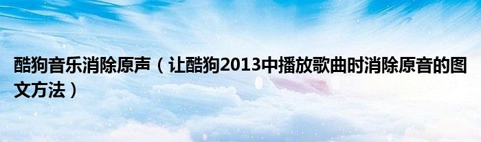 大家好,今天小悦来为大家解答以上问题。酷狗音乐消除原声,让酷狗2013中播放歌曲时消除原音的图文方法很多人还不知道,现在让我们一起来看看吧!