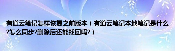 有道云笔记怎样恢复之前版本(有道云笔记本地笔记是什么?怎么同步?删除后还能找回吗?)