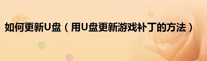 大家好,今天小悦来为大家解答以上问题。如何更新U盘,用U盘更新游戏补丁的方法很多人还不知道,现在让我们一起来看看吧!