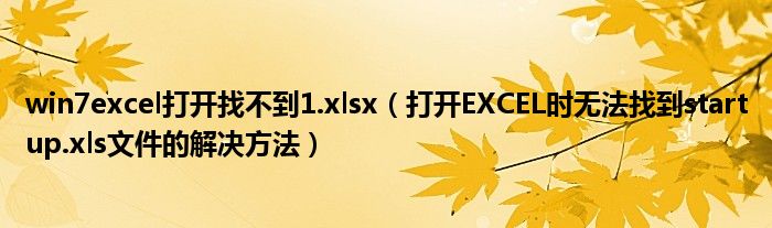 大家好,小太来为大家解答以上问题。win7excel打开找不到1.xlsx,打开EXCEL时无法找到startup.xls文件的解决方法很多人还不知道,现在让我们一起来看看吧!