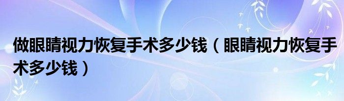 大家好,linda来为大家解答以上的问题。做眼睛视力恢复手术多少钱,眼睛视力恢复手术多少钱很多人还不知道,现在让我们一起来看看吧!