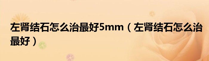 大家好,linda来为大家解答以上的问题。左肾结石怎么治最好5mm,左肾结石怎么治最好很多人还不知道,现在让我们一起来看看吧!