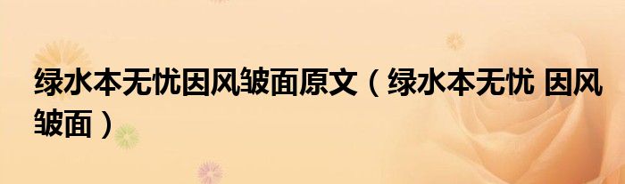 大家好,雨雨来为大家解答以上问题,绿水本无忧因风皱面原文,绿水本无忧 因风皱面很多人还不知道,现在让我们一起来看看吧!