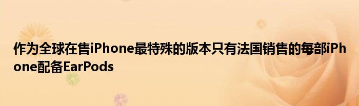 作为全球在售iPhone最特殊的版本,只有法国销售的每部iPhone配备EarPods,不过这个福利已经终结了。据法国媒体报道称,当地运营商已经停止了上述福利,从今天开始,苹果将不再为在法国销售的每部iPhone配备EarPods。由于法国法律规定,在该国销售的每部智能手机都必须有一个"免提套件",因此苹果以前必须在iPhone的包装盒中包括EarPods。
