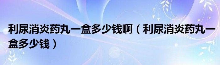 大家好,linda来为大家解答以上的问题。利尿消炎药丸一盒多少钱啊,利尿消炎药丸一盒多少钱很多人还不知道,现在让我们一起来看看吧!