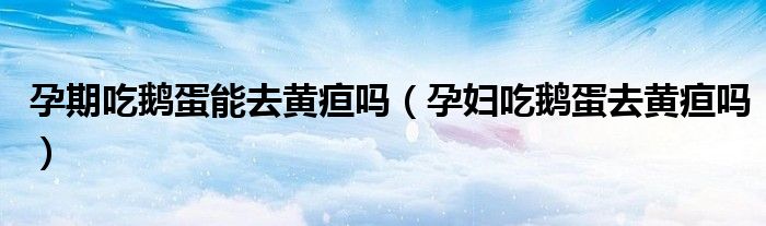 大家好,linda来为大家解答以上的问题。孕期吃鹅蛋能去黄疸吗,孕妇吃鹅蛋去黄疸吗很多人还不知道,现在让我们一起来看看吧!
