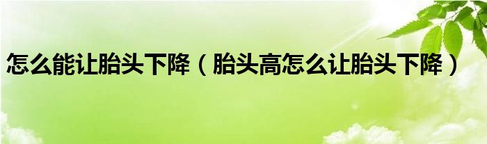 大家好,linda来为大家解答以上的问题。怎么能让胎头下降,胎头高怎么让胎头下降很多人还不知道,现在让我们一起来看看吧!