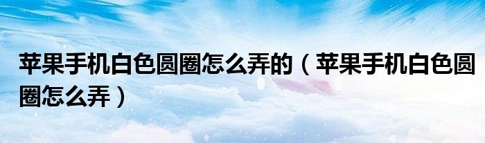大家好,小晋来为大家解答以下问题,关于苹果手机白色圆圈怎么弄的,苹果手机白色圆圈怎么弄很多人还不知道,今天让我们一起来看看吧!