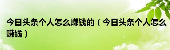 大家好,小晋来为大家解答以下问题,关于今日头条个人怎么赚钱的,今日头条个人怎么赚钱很多人还不知道,今天让我们一起来看看吧!