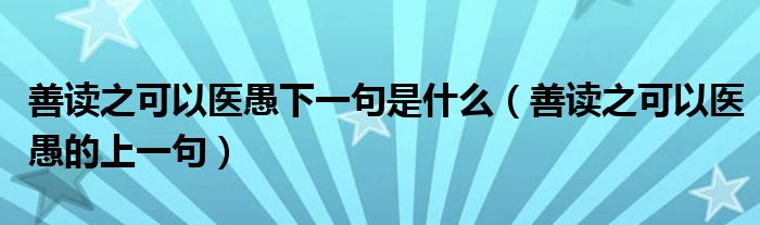 善读之可以医愚下一句是什么(善读之可以医愚的上一句)