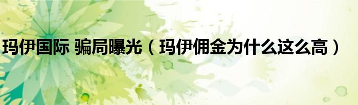 玛伊国际 骗局曝光(玛伊佣金为什么这么高)