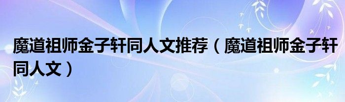 魔道祖师金子轩同人文推荐(魔道祖师金子轩同人文)