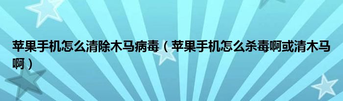 苹果手机怎么清除木马病毒(苹果手机怎么杀毒啊或清木马啊)