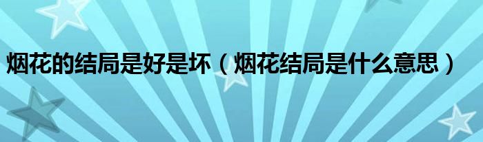 大家好,小晋来为大家解答以下问题,关于烟花的结局是好是坏,烟花结局是什么意思很多人还不知道,今天让我们一起来看看吧!