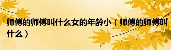 大家好,小晋来为大家解答以下问题,关于师傅的师傅叫什么女的年龄小,师傅的师傅叫什么很多人还不知道,今天让我们一起来看看吧!