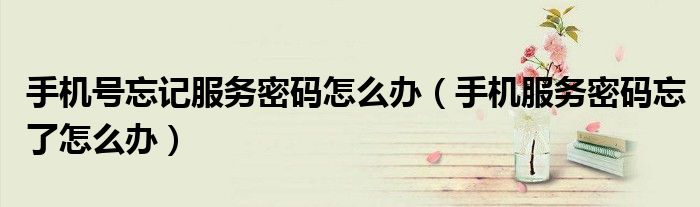 手机号忘记服务密码怎么办(手机服务密码忘了怎么办)
