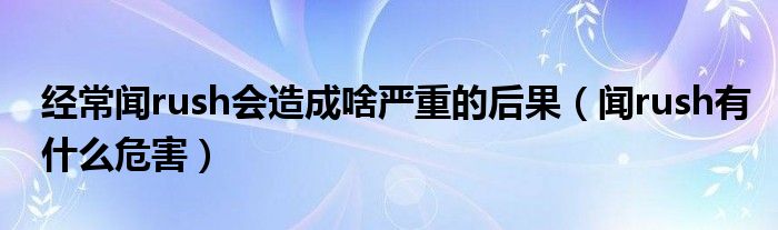 大家好,小晋来为大家解答以下问题,关于经常闻rush会造成啥严重的后果,闻rush有什么危害很多人还不知道,今天让我们一起来看看吧!