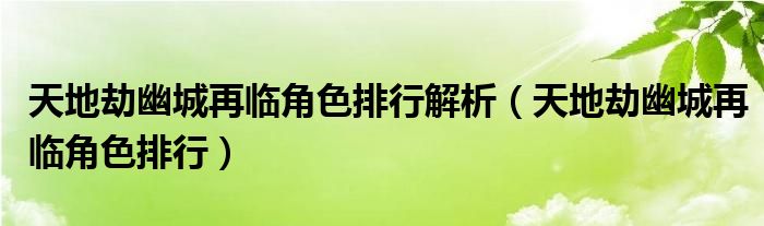 天地劫幽城再临角色排行解析,天地劫幽城再临角色排行很多人还不知道,乐乐来为大家解答以上问题,现在让我们一起来看看吧!