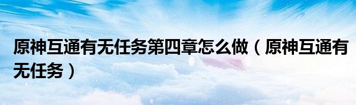 原神互通有无任务第四章怎么做,原神互通有无任务很多人还不知道,乐乐来为大家解答以上问题,现在让我们一起来看看吧!