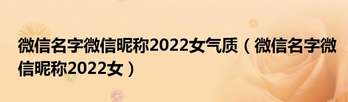 微信名字微信昵称2022女气质,微信名字微信昵称2022女很多人还不知道,乐乐来为大家解答以上问题,现在让我们一起来看看吧!