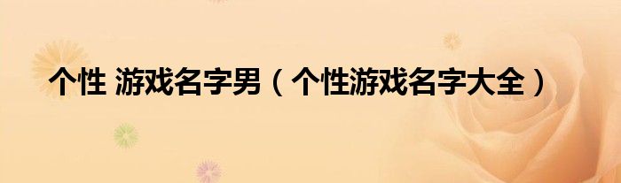 个性 游戏名字男,个性游戏名字大全很多人还不知道,乐乐来为大家解答以上问题,现在让我们一起来看看吧!