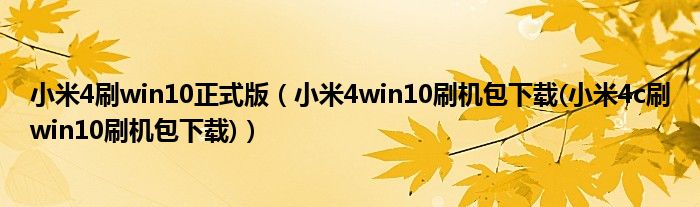1.小米4Win10刷机包下载方法:目前微软已正式进入手机版Win10系统的最后测试阶段,预计在今年夏天就可以正式对外公开小米4Win10刷机包,届时大家可以首先从小米论坛获取Windows 10预览版手机刷机包。