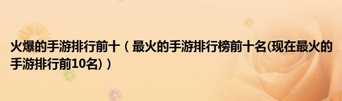 大家好,小常来为大家解答以上问题。火爆的手游排行前十,最火的手游排行榜前十名(现在最火的手游排行前10名)很多人还不知道,现在让我们一起来看看吧!