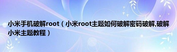 大家好,小常来为大家解答以上问题。小米手机破解root,小米root主题如何破解密码破解,破解小米主题教程很多人还不知道,现在让我们一起来看看吧!